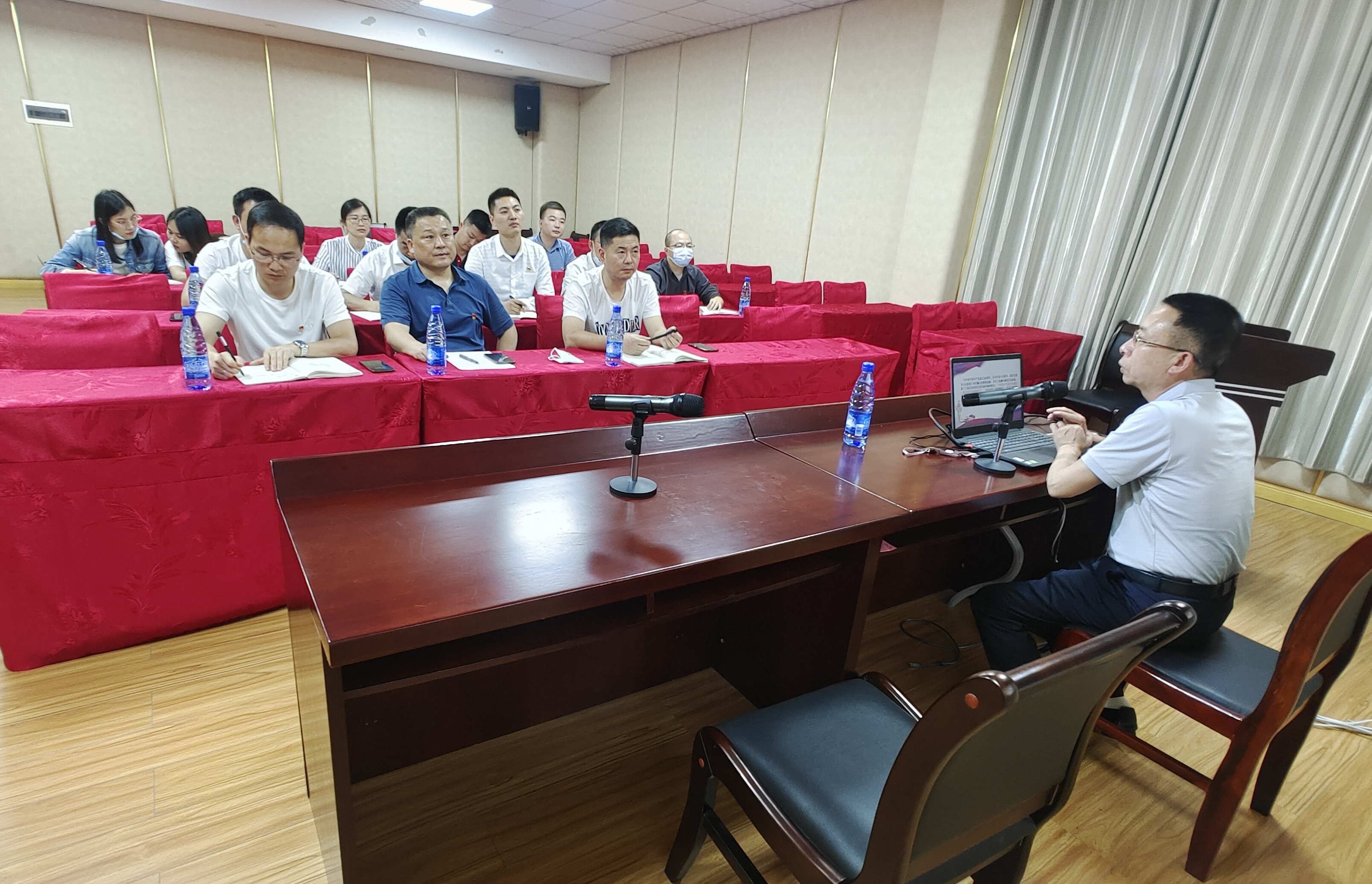 通道縣委黨校俞宗逵老師在給交投全體支部黨員上黨課