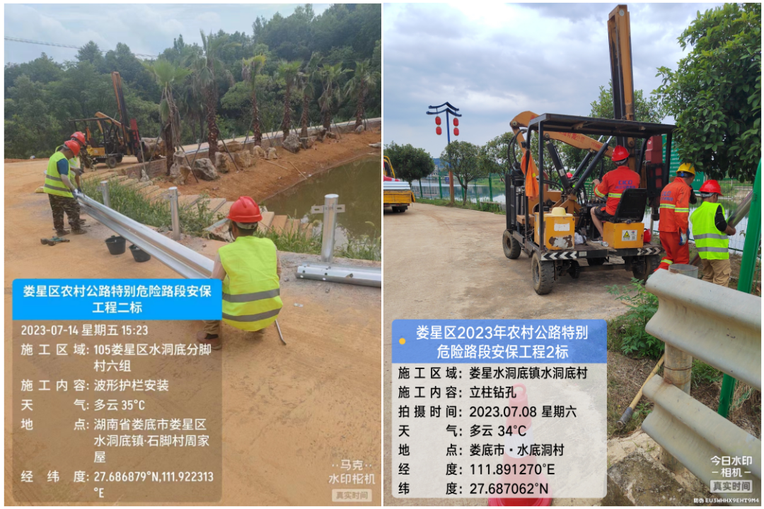在農(nóng)村公路安防施工現(xiàn)場,三湘路橋的一線員工在機(jī)械的配合下正有序地對護(hù)欄立柱、護(hù)欄板進(jìn)行安裝,炙熱的天氣擋不住他們30天完成項目建設(shè)任務(wù)的決心。