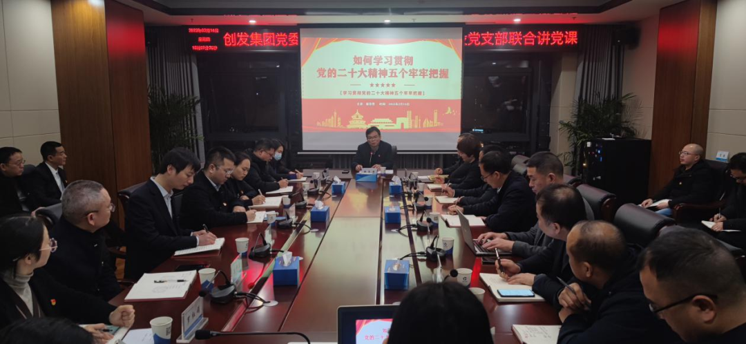 為全面貫徹落實(shí)黨的二十大精神,充分發(fā)揮黨組織領(lǐng)導(dǎo)核心作用,全面落實(shí)黨建推動(dòng)公司高質(zhì)量發(fā)展,2月16日,市創(chuàng)發(fā)集團(tuán)黨委書記、董事長梁養(yǎng)賢以“如何學(xué)習(xí)貫徹黨的二十大精神”為主題,為交投黨支部全體黨員講授了一堂精彩的黨課。
