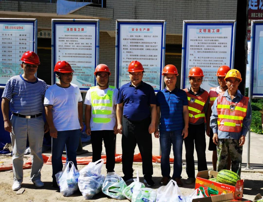 時(shí)值高溫酷暑天氣,又逢施工黃金季節(jié),為切實(shí)做好高溫期間在建項(xiàng)目安全生產(chǎn)工作, 合理組織施工建設(shè),加快施工進(jìn)度,保證施工安全,鼓舞士氣、傳遞關(guān)愛,8月14日,市交建投副總經(jīng)理劉軍民受總經(jīng)理肖小波委托,率隊(duì)奔赴公司在建項(xiàng)目工地開展“送清涼 促安全”慰問活動(dòng)。